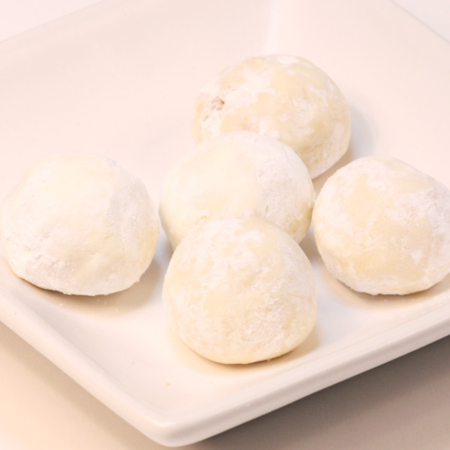 まるで雪のお菓子のように粉砂糖でお化粧。ナッツとの味をまろやかになじませています(1袋5個入)